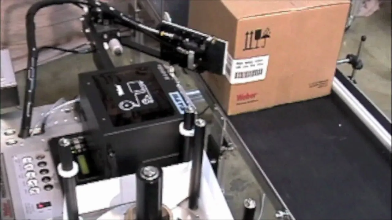 The Corner-Wrap system handles labels up to 4 inches wide and 12 inches in length, and will print and apply labels to a maximum of 20 cartons per minute delivered at least 24 inches apart at a top conveyor speed of 60 feet per minute.