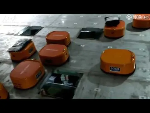 Hikvision is the name of the robot manufacturer – also located in Hangzhou. They are available in small (as seen in the video) or large enough to transport an entire car or a pallet. In various press reports it can be seen that the costs were halved and the efficiency was increased by 30% – with even fewer sorting errors.